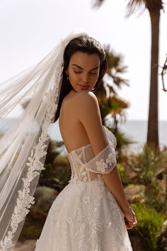 Graceful A-Line Wedding Dress with Flowing Elegance