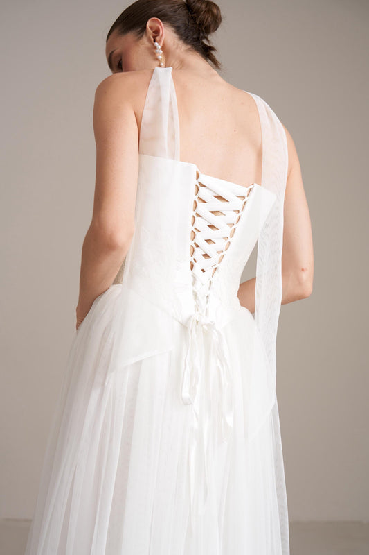 Hydrangea Lace Wedding Corset and Tulle Skirt: Modern Bridal Separates