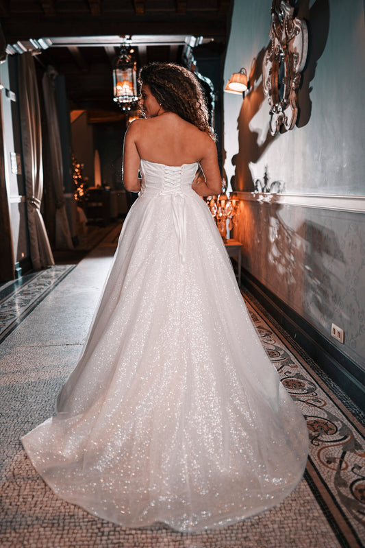 Plus Size Glitter Tulle A-Line Wedding Dress with Sweetheart Neckline and Corset Back