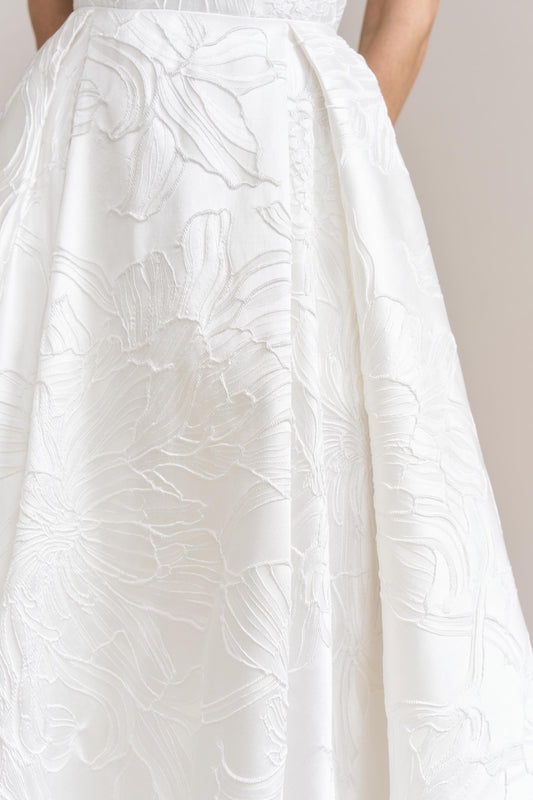 Floral Jacquard Midi Wedding Dress: Silk Blend, Tea Length