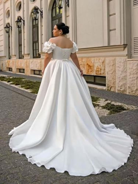 Romantic Plus Size Off-Shoulder Satin Wedding Dress