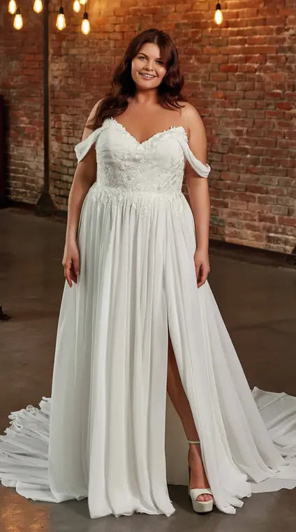 Plus Size Chiffon A-Line Wedding Dress with Side Slit